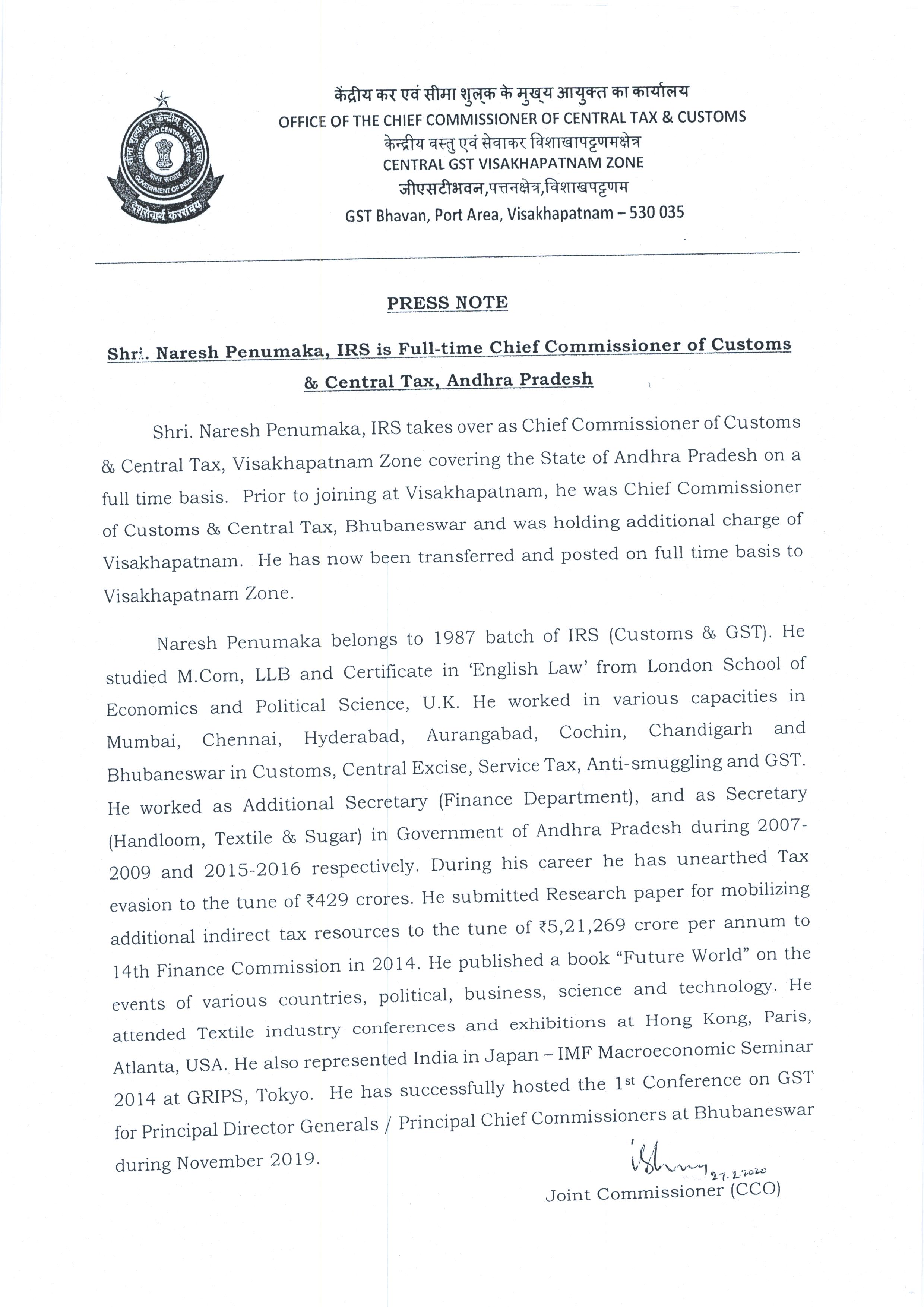 6Assumption of charge of Chief Commissioner by Shri. Naresh Penumaka, IRS27.02.2020