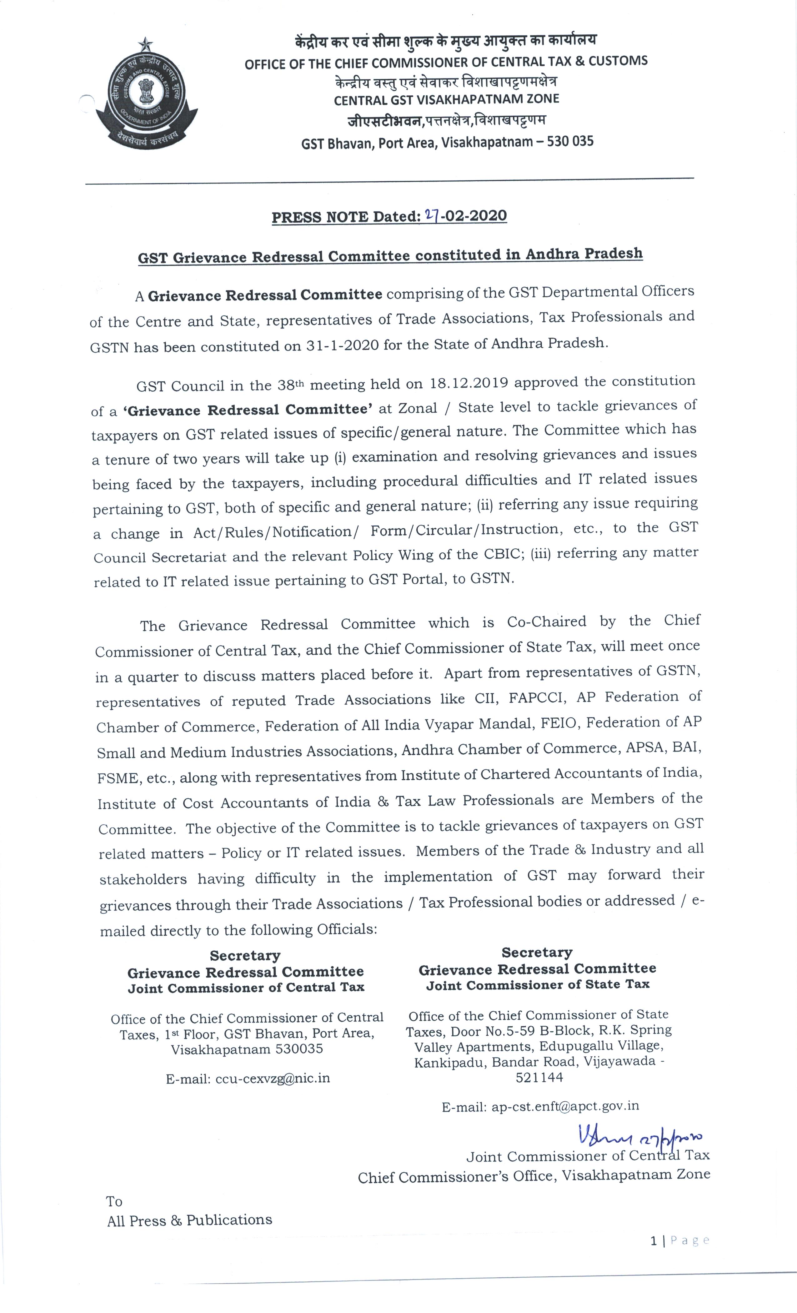 7Constitution of Grievance Redressal Committee for the state of Andhra Pradesh27.02.2020